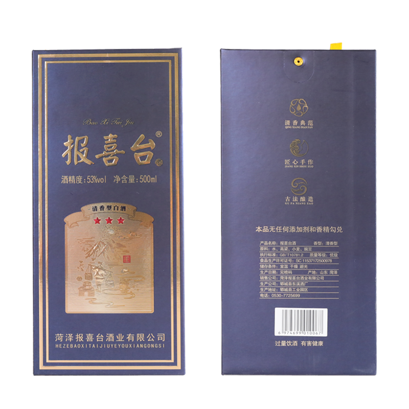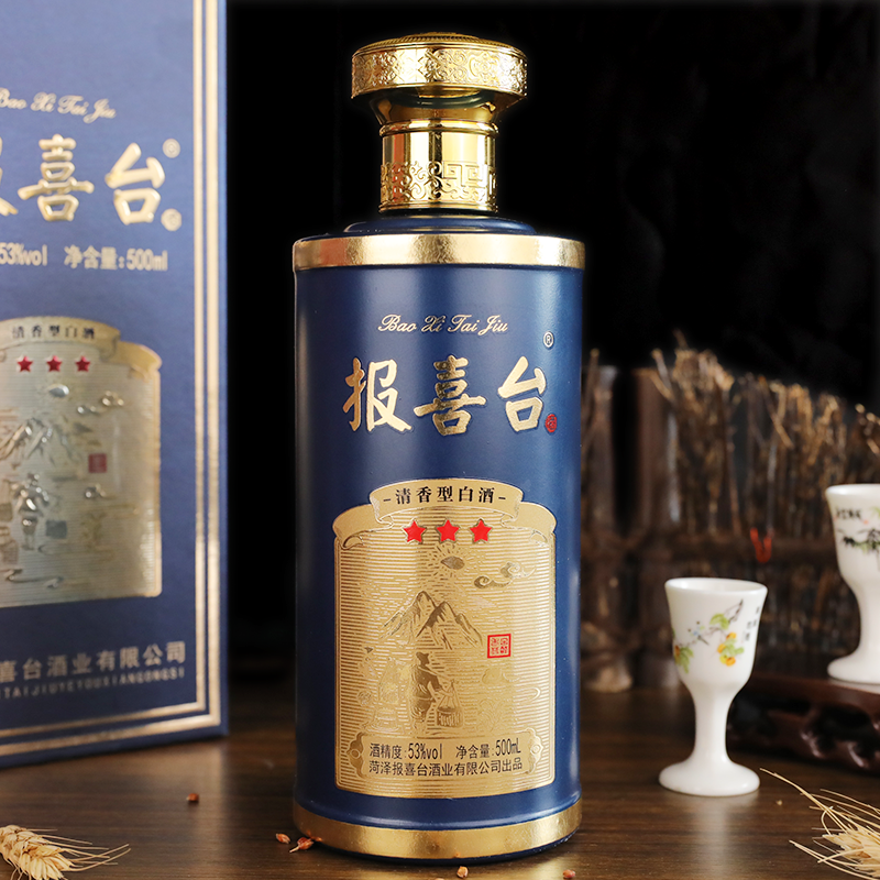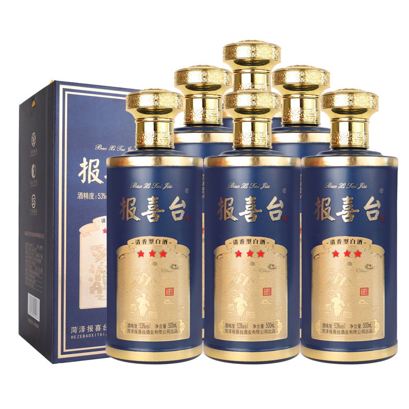 山东菏泽 报喜台 蓝 53度 清香型白酒 古法酿造 500ml*6瓶 整箱