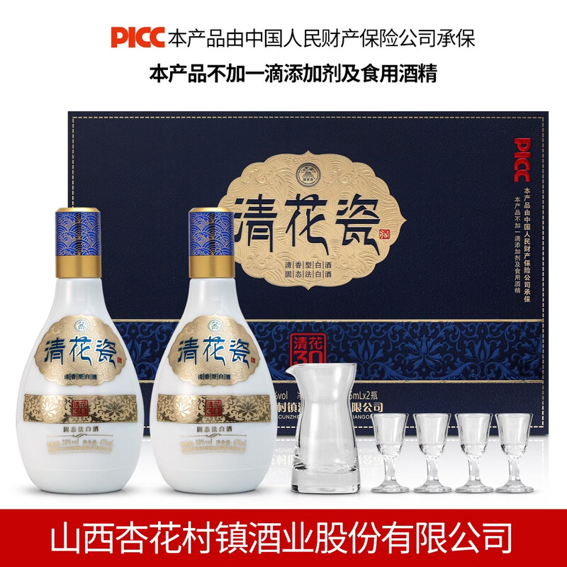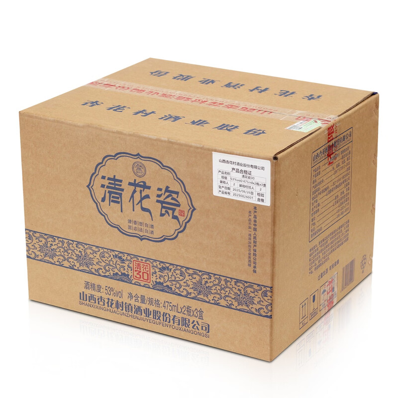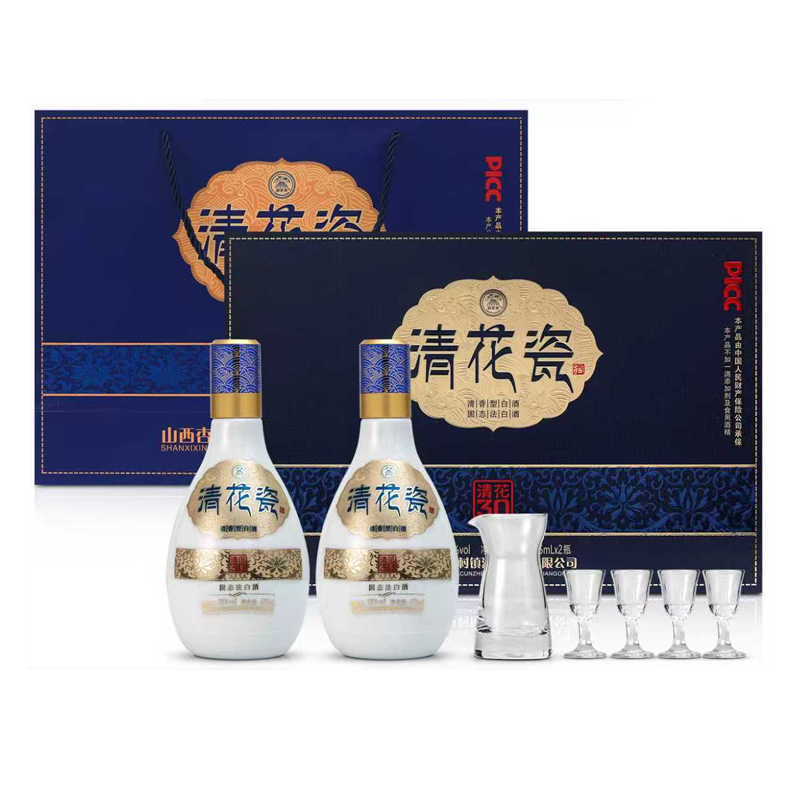 清花瓷 清花30 礼盒 53度 清香型白酒 高端礼盒酒 475mL*2瓶*3盒 整箱装