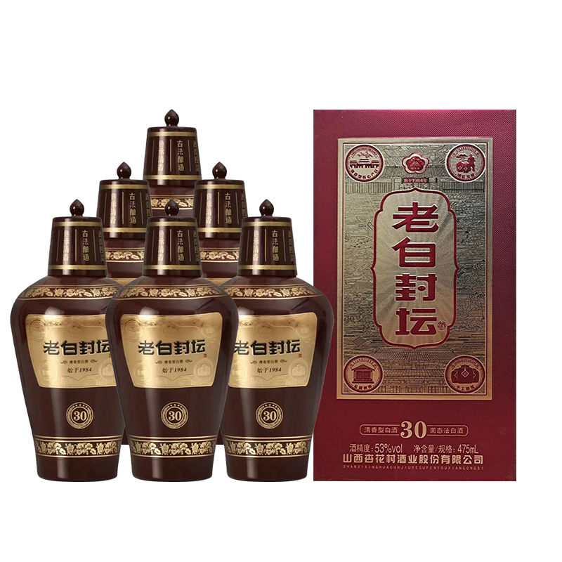 山西杏花村酒业股份有限公司 老白封坛30 53%vol 清香型白酒 475ml*6瓶 整箱装