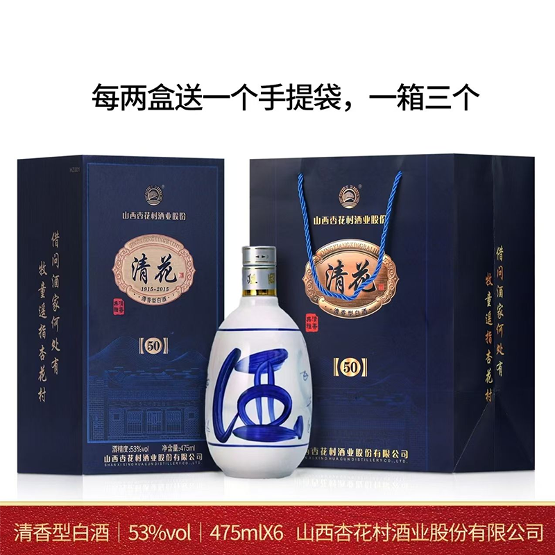 山西杏花村酒业股份有限公司 清花50 53度 清香型 送礼 自饮 收藏 475ml*6瓶 整箱装