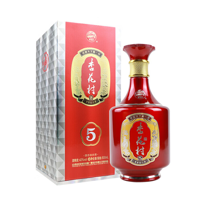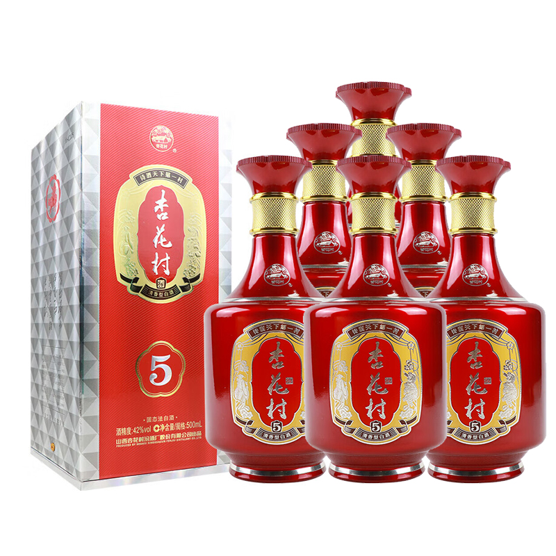 杏花村 汾酒 金质5 清香型白酒 42度 纯粮酒 婚宴送礼宴请 500mL*6瓶 整箱装